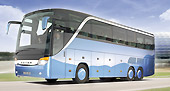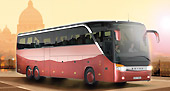 Reisebus 55 65 Sitzplätze z.B. der Setra S 417 HDH, extra lang mit bis zu 14 Metern Länge und dadurch für große Gruppen mit hohen Komfortansprüchen geeignet. Bus für den Fernreiseverkehr mit Schlafsesseln. Gibt es in verschiedenen Klassifizierungen, je nach Sitzabstand und Ausstattungsmerkmalen.