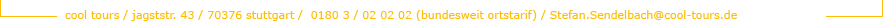 Die Firma Cool-Tours Buslogistik gibt es bereits seit Mai 1998. Ein fünfköpfiges Stammteam in Stuttgart und über 100 freiberufliche Mitarbeiter für die Projekte, kümmern sich seitdem um die Buslogistik und um Busshuttles aller Art. Zur Firmengruppe von Cool-Tours gehören zudem: |